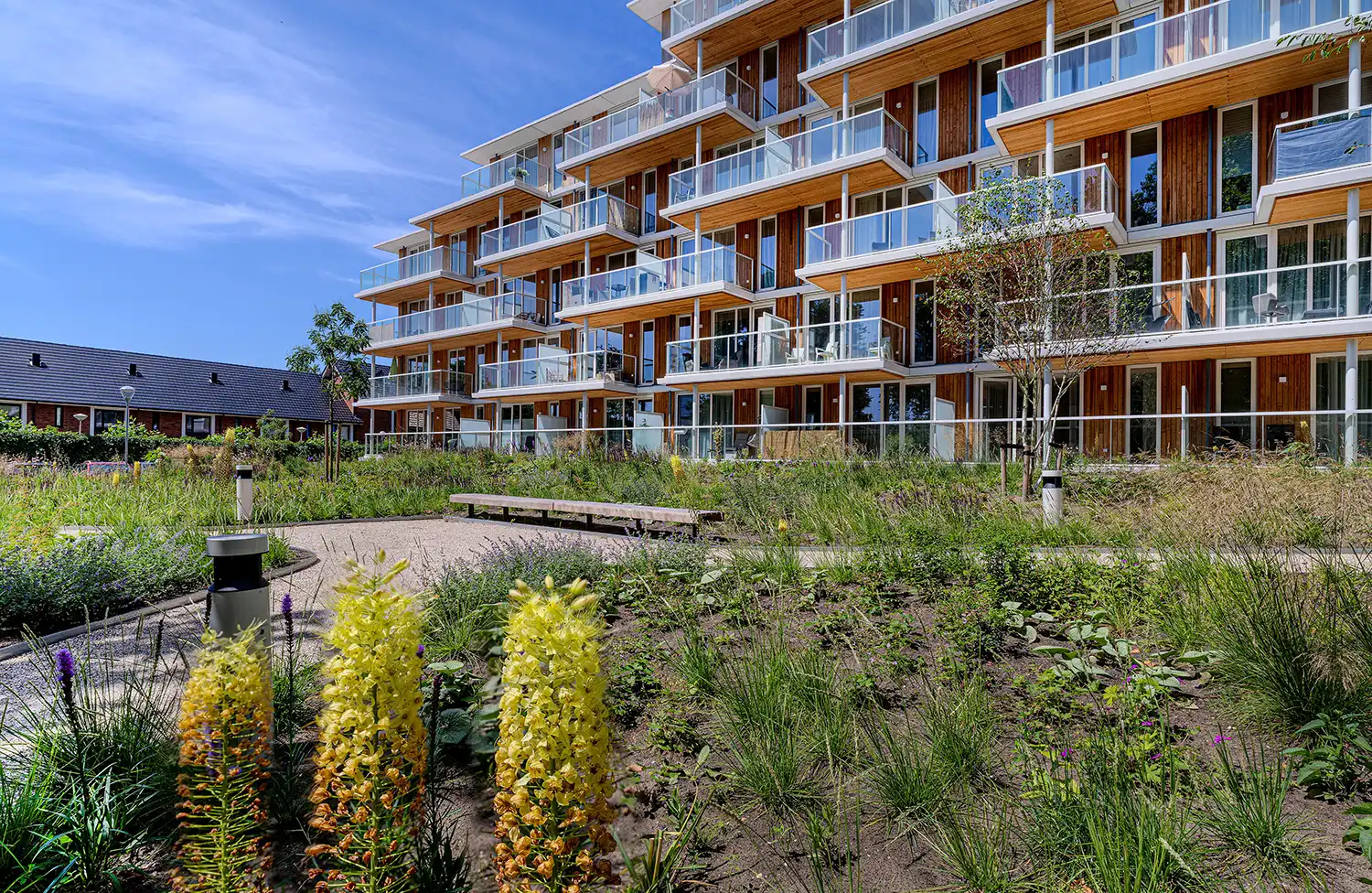 “Het Levende Gebouw” is een initiatief dat gebouwen verrijkt met groen op, aan, rondom en in het gebouw, voor een gezondere, duurzamere leefomgeving. Bij Weverling Groenproviders, met meer dan 85 jaar ervaring als groene expert, omarmen we dit concept door groen te integreren in bouwprojecten. Van daktuinen en groene gevels tot parkjes: het levende gebouw bevordert biodiversiteit, klimaatadaptatie en welzijn. Als lid van VHG en partner van specialistische marktpartijen als Optigrün, Waterpro en NatuurPro realiseren we multidisciplinaire projecten die gebouwen ‘levend’ maken. Ontdek hoe we groen en bouw combineren voor toekomstbestendige resultaten.