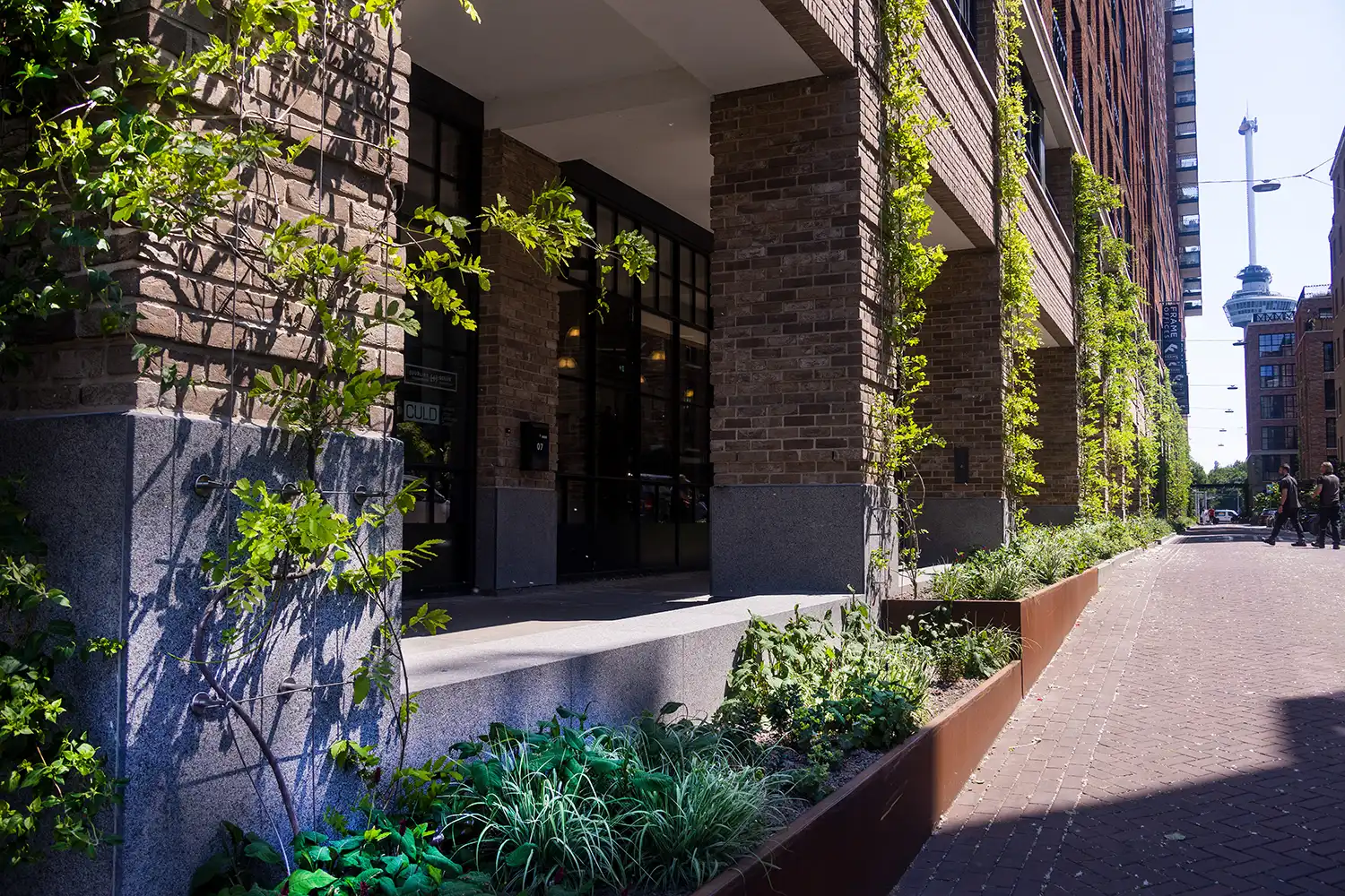 Groene gevels, ook wel verticale tuinen genoemd, zijn systemen waarbij planten tegen of op muren groeien, met behulp van klimrekken of modulaire panelen. Er zijn twee hoofdtypen: groengevels met bodembedekkers (klimplanten in volle grond) en gevelsystemen met substraten (zoals cassettes met irrigatie). Bij Weverling passen we beide toe, afhankelijk van de locatie en doelstellingen. Deze gevels bieden niet alleen esthetiek, maar ook functionele voordelen zoals geluiddemping en luchtzuivering. Ze zijn ideaal voor stedelijke gebouwen waar horizontale ruimte beperkt is, en integreren naadloos met bestaande structuren.